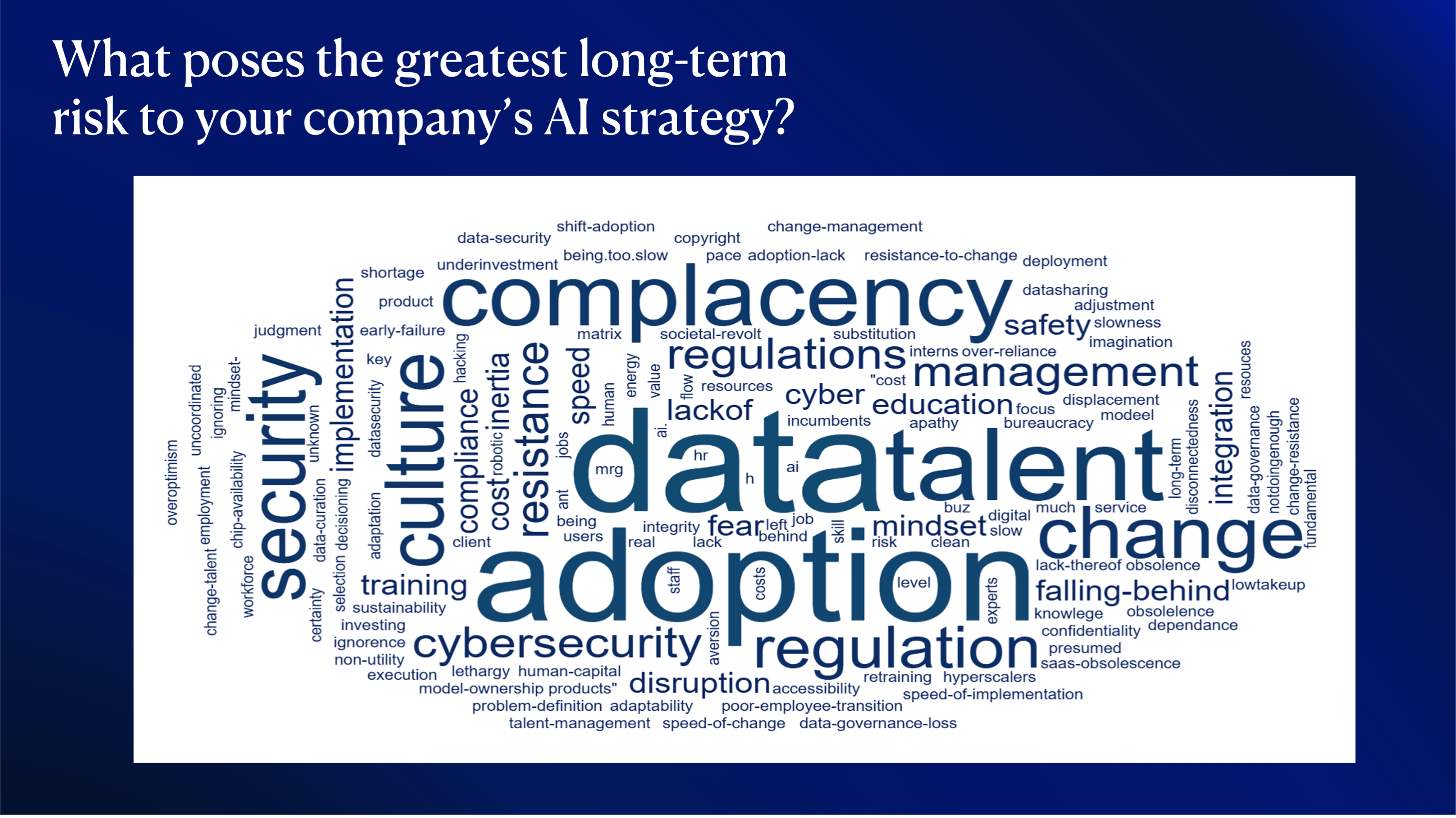 Harnessing proprietary data, especially for high-frequency, high-value decisions such as dynamic pricing, was cited as a key factor in delivering differentiated value to clients and in building and sustaining competitive advantage. As AI models become more sophisticated, the importance of data privacy and security is only set to grow, with companies investing in infrastructure that supports both innovation and data protection. Audience sentiment echoed these concerns, with data, adoption, and talent identified as the greatest long-term risks to their companies’ AI strategies.